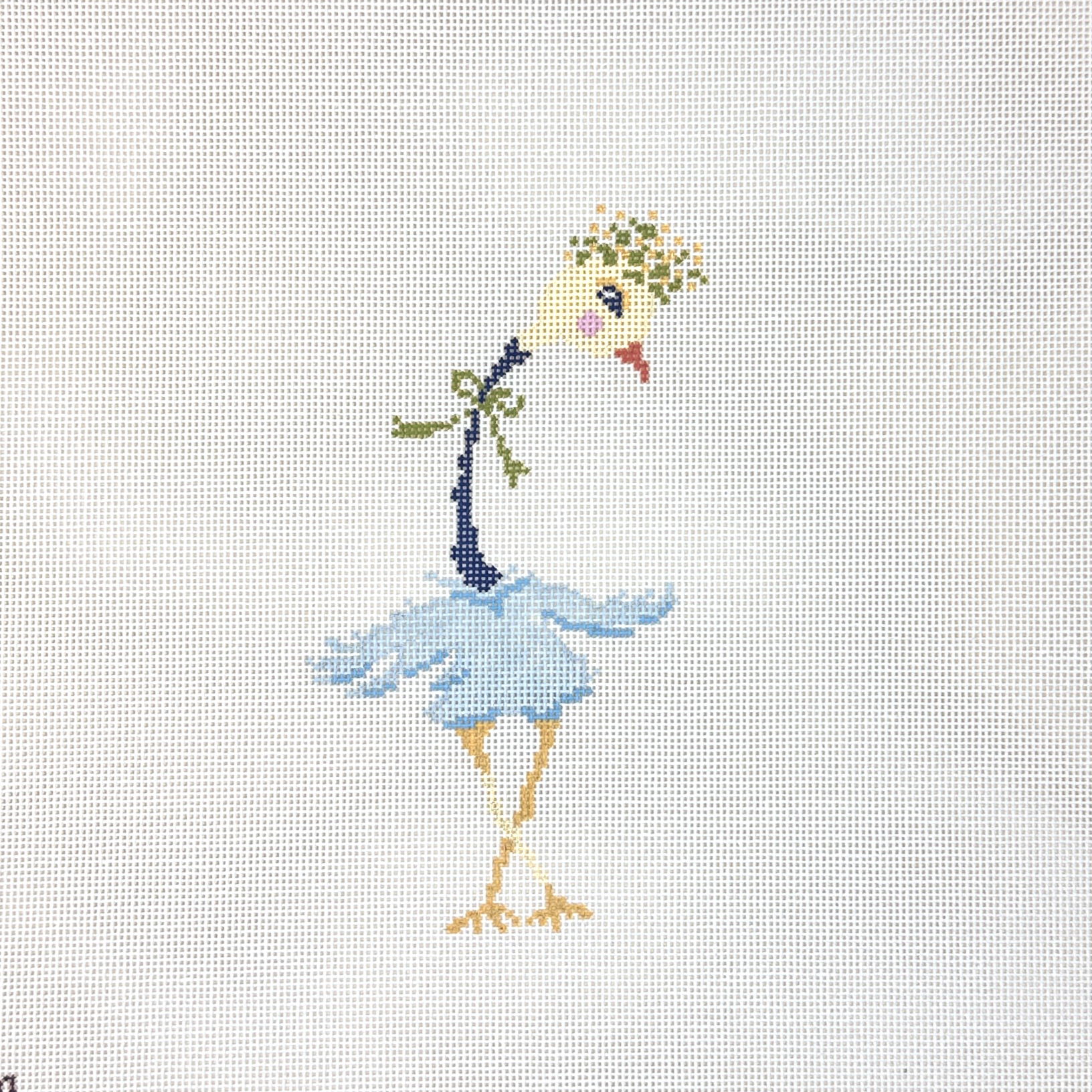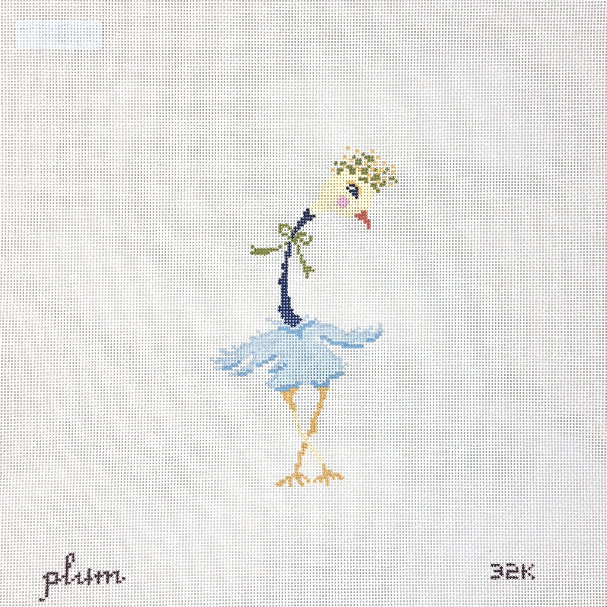 This is a hand painted needlepoint canvas by the Plum Stitchery. This canvas features a painting of a whimsical blue bird.