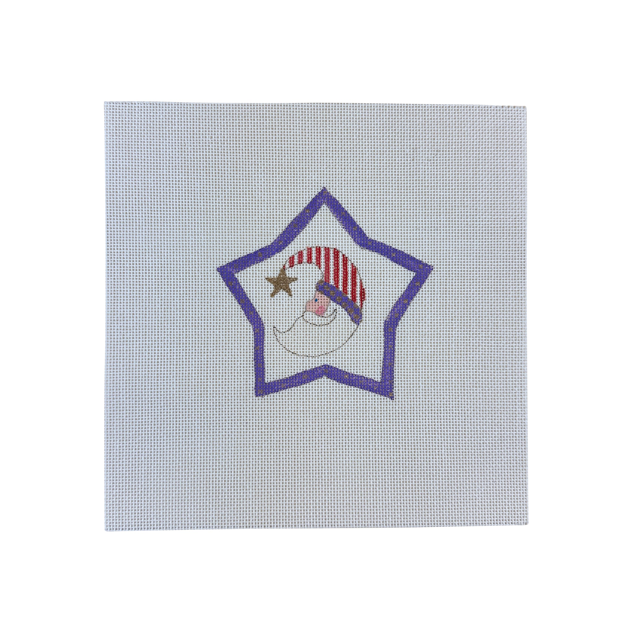 This hand painted needlepoint canvas from The Princess and Me features a Santa crescent moon.