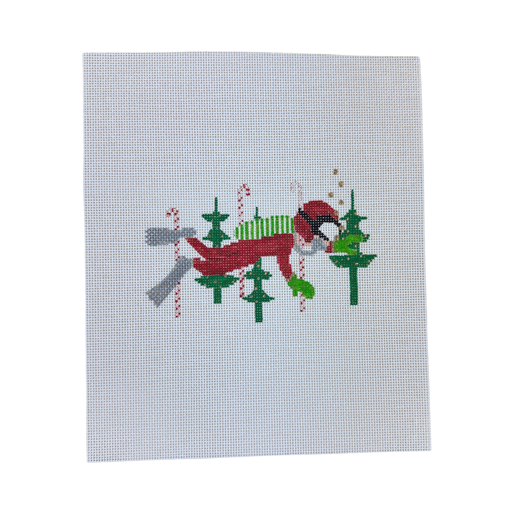 This hand painted needlepoint canvas from The Princess and Me features Santa scuba diving among candy canes and Christmas trees.