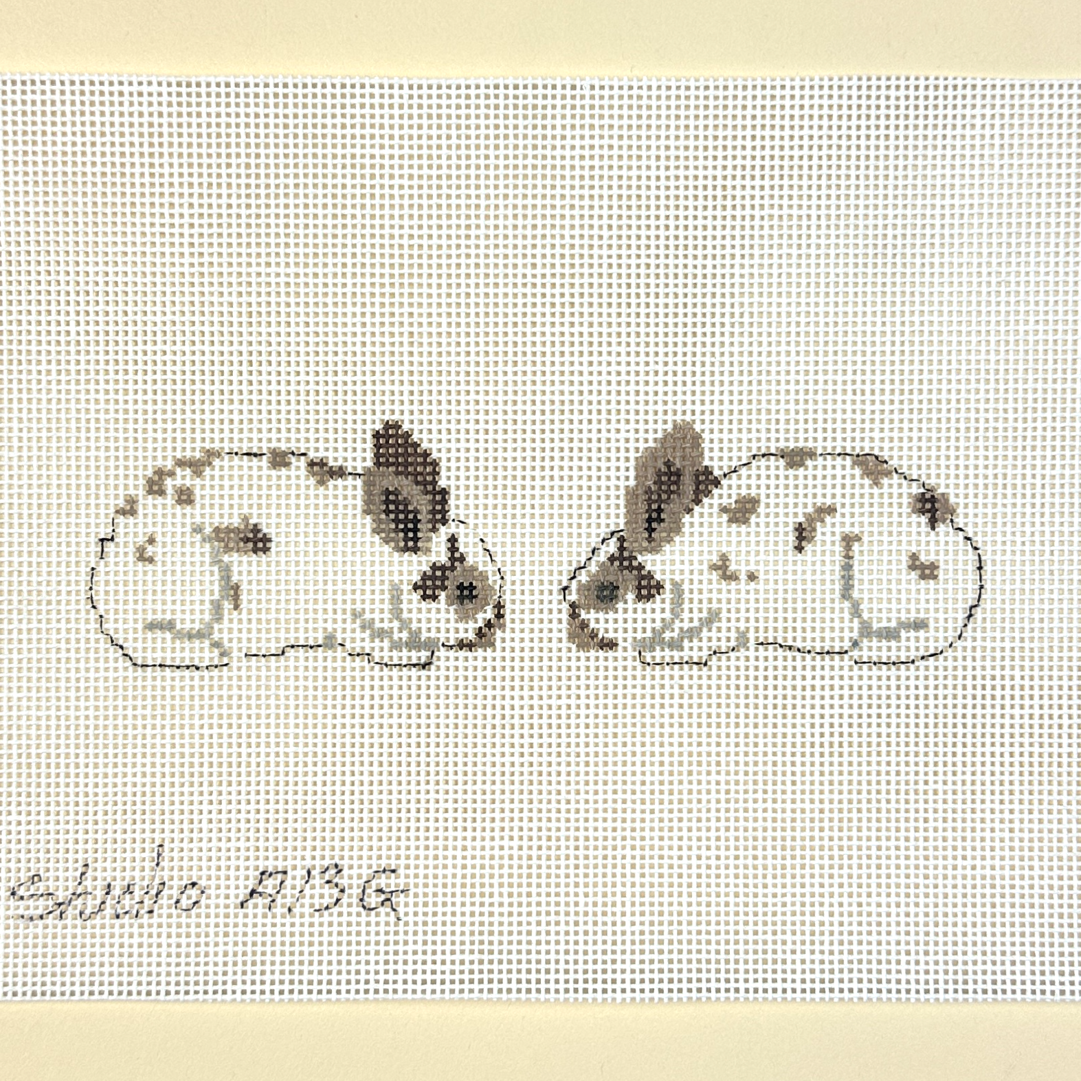 This is a hand painted needlepoint canvas by The Studio Midwest featuring a cute bunny. It is designed to be finished as a scissor fob, but would also make a cute two-sided ornament or bag charm.