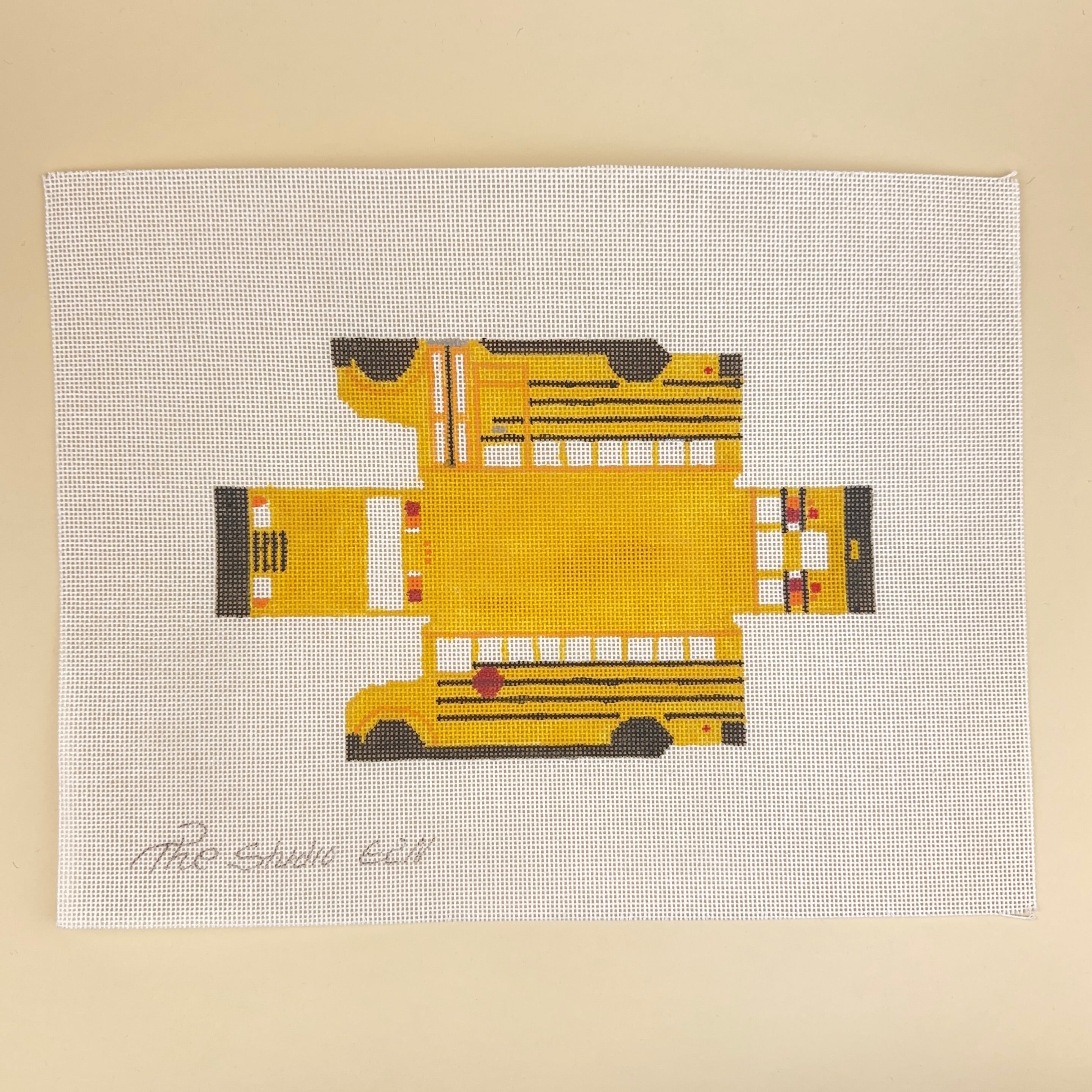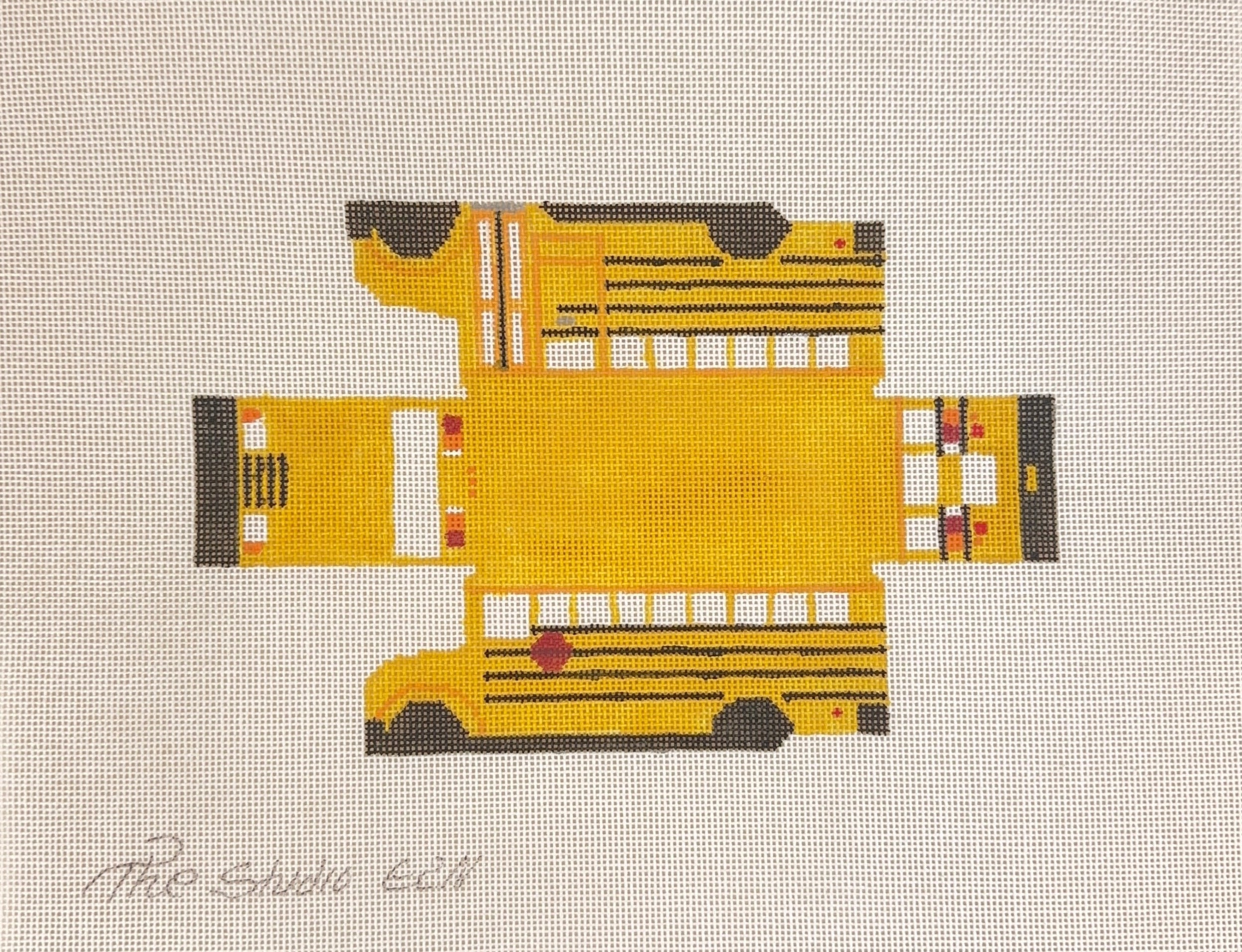 This hand painted needlepoint canvas by The Studio Midwest features a classic school bus designed to be finished into a 3D piece.
