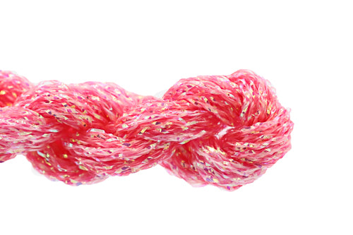 This is Kreinik Braid Overdyed #12 from ThreadworX in color 910040 Strawberry Shortcake. 1 ply on 18 mesh. About equivalent in size to #5 Perle Cotton. Pre-cut lengths of overdyed sparkle.