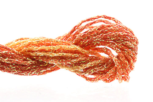 This is Kreinik Braid Overdyed #12 from ThreadworX in color 91072 Wild Poppies. 1 ply on 18 mesh. About equivalent in size to #5 Perle Cotton. Pre-cut lengths of overdyed sparkle.
