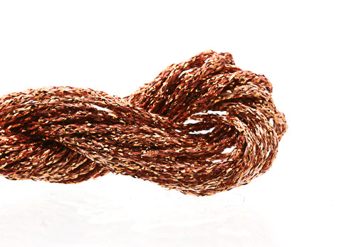 This is Kreinik Braid Overdyed #12 from ThreadworX in color 91077 Pottery. 1 ply on 18 mesh. About equivalent in size to #5 Perle Cotton. Pre-cut lengths of overdyed sparkle.