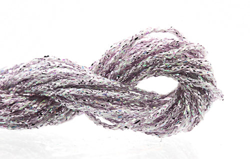 This is Kreinik Braid Overdyed #12 from ThreadworX in color 91079 Purple Coral. 1 ply on 18 mesh. About equivalent in size to #5 Perle Cotton. Pre-cut lengths of overdyed sparkle.