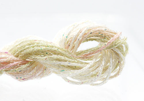 This is Kreinik Braid Overdyed #12 from ThreadworX in color 91095 Cactus Flowers. 1 ply on 18 mesh. About equivalent in size to #5 Perle Cotton. Pre-cut lengths of overdyed sparkle.