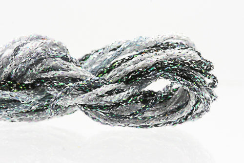 This is Kreinik Braid Overdyed #12 from ThreadworX in color 91120 Foxy. 1 ply on 18 mesh. About equivalent in size to #5 Perle Cotton. Pre-cut lengths of overdyed sparkle.