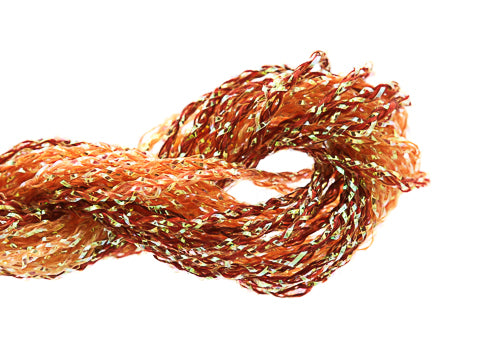 This is Kreinik Braid Overdyed #8 from ThreadworX in color 71072 Wild Poppies. 1 ply on 18 mesh for light coverage. About equivalent in size to #8 Perle Cotton. Pre-cut lengths of overdyed sparkle.