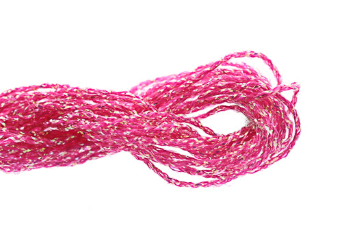 This is Kreinik Braid Overdyed #8 from ThreadworX in color 711000 Hawaiian Hot Pink. 1 ply on 18 mesh for light coverage. About equivalent in size to #8 Perle Cotton. Pre-cut lengths of overdyed sparkle.