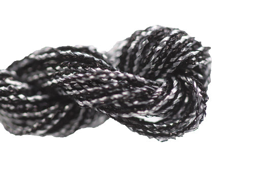 This is Kreinik Braid Overdyed #8 from ThreadworX in color 711218 Antique. 1 ply on 18 mesh for light coverage. About equivalent in size to #8 Perle Cotton. Pre-cut lengths of overdyed sparkle.