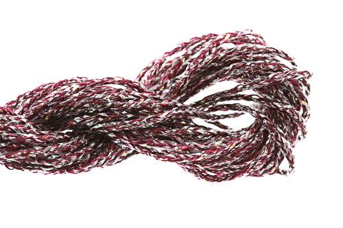 This is Kreinik Braid Overdyed #8 from ThreadworX in color 711302 Burgundy Wine. 1 ply on 18 mesh for light coverage. About equivalent in size to #8 Perle Cotton. Pre-cut lengths of overdyed sparkle.