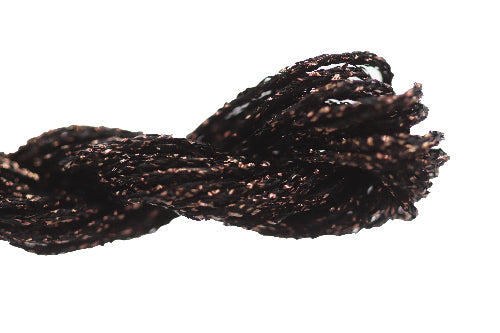 This is Kreinik Braid Overdyed #8 from ThreadworX in color 711570 Rich Chocolate. 1 ply on 18 mesh for light coverage. About equivalent in size to #8 Perle Cotton. Pre-cut lengths of overdyed sparkle.