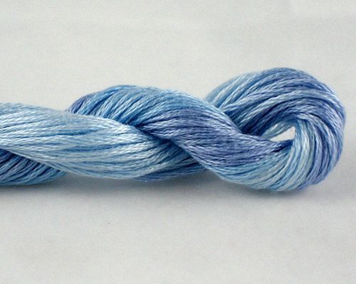 This is Overdyed Floss from ThreadworX in color 01015 Ice Blue. Vivid variegated cotton threads in a range of colors and shades. Use all 6 strands on 13 mesh, 3 or 4 strands on 18 mesh. Pre-cut lengths.