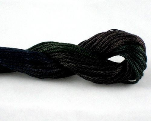 This is Overdyed Cotton Floss from ThreadWorX in color 01070 Rocky Mountain. Vivid variegated cotton threads in a range of colors and shades. Use all 6 strands on 13 mesh, 3 or 4 strands on 18 mesh. Pre-cut lengths.
