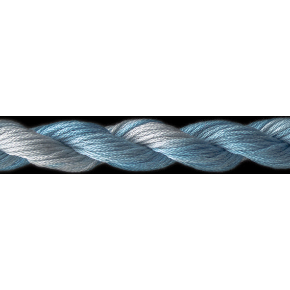This is Overdyed Floss from ThreadworX in color 10215 Powder Blue. Vivid variegated cotton threads in a range of colors and shades. Use all 6 strands on 13 mesh, 3 or 4 strands on 18 mesh. Pre-cut lengths.