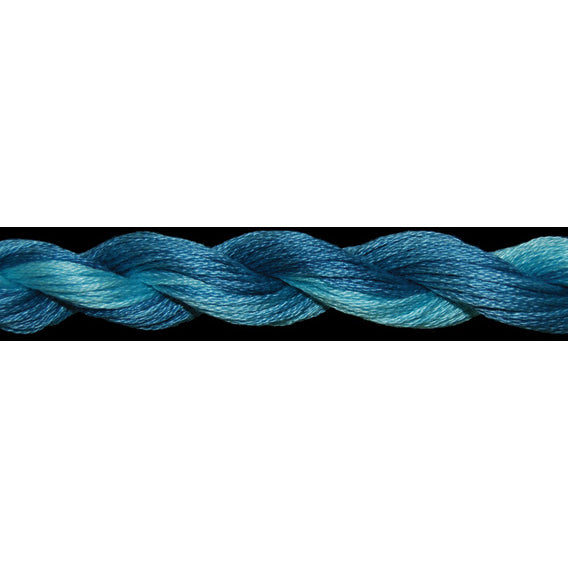 This is Overdyed Floss from ThreadworX in color 10585 Green River. Vivid variegated cotton threads in a range of colors and shades. Use all 6 strands on 13 mesh, 3 or 4 strands on 18 mesh. Pre-cut lengths.
