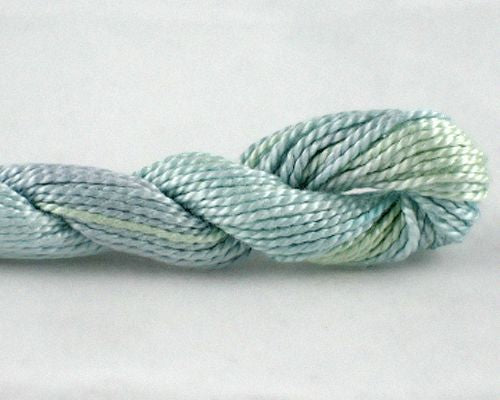 This is Overdyed Pearl Cotton #5 from ThreadworX in color 01133 Summer Shadows. Hand-overdyed, mercerized 100% long-staple Egyptian Giza cotton.