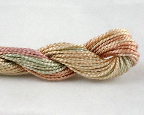 This is Overdyed Pearl Cotton #5 from ThreadworX in color 01142 Desert Flowers. Hand-overdyed, mercerized 100% long-staple Egyptian Giza cotton.
