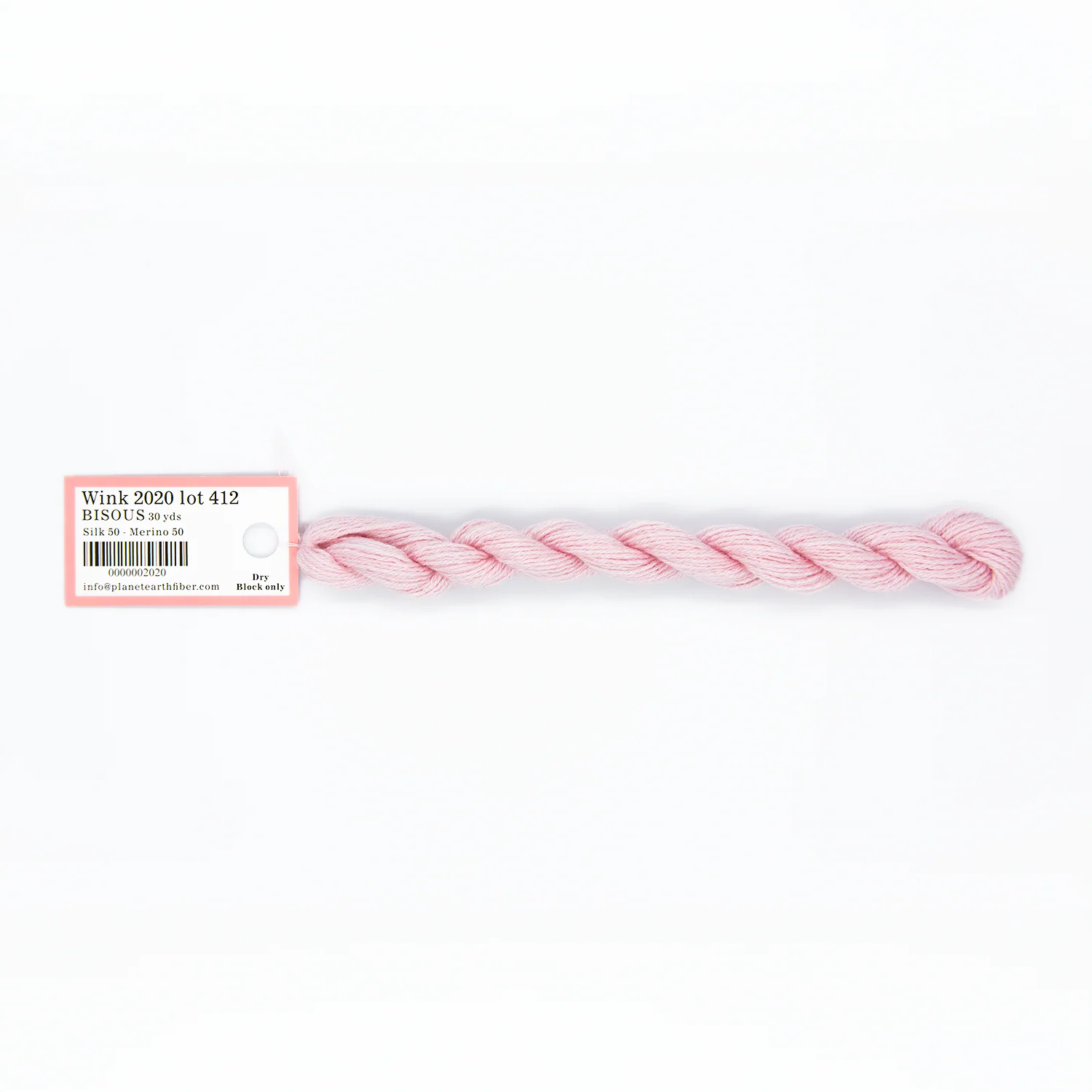 This is Bisous from Planet Earth in color 2020 Wink. Bisous is a multipurpose silk-wool blend from Tilli Tomas. Use as-is for very light coverage on 18 mesh or for embroidery. Use additional plies to build up coverage on canvas - for full coverage, we recommend 2 plies on 18 mesh and 3 plies on 13 mesh.