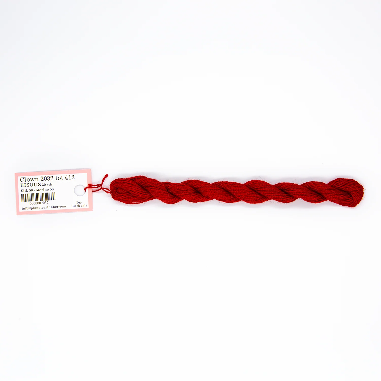 This is Bisous from Planet Earth in color 2032 Clown. Bisous is a multipurpose silk-wool blend from Tilli Tomas. Use as-is for very light coverage on 18 mesh or for embroidery. Use additional plies to build up coverage on canvas - for full coverage, we recommend 2 plies on 18 mesh and 3 plies on 13 mesh.
