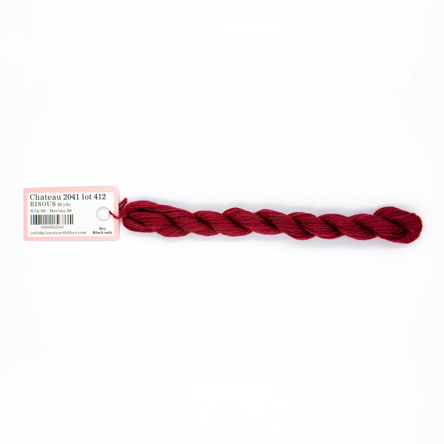 This is Bisous from Planet Earth in color 2041 Chateau. Bisous is a multipurpose silk-wool blend from Tilli Tomas. Use as-is for very light coverage on 18 mesh or for embroidery. Use additional plies to build up coverage on canvas - for full coverage, we recommend 2 plies on 18 mesh and 3 plies on 13 mesh.