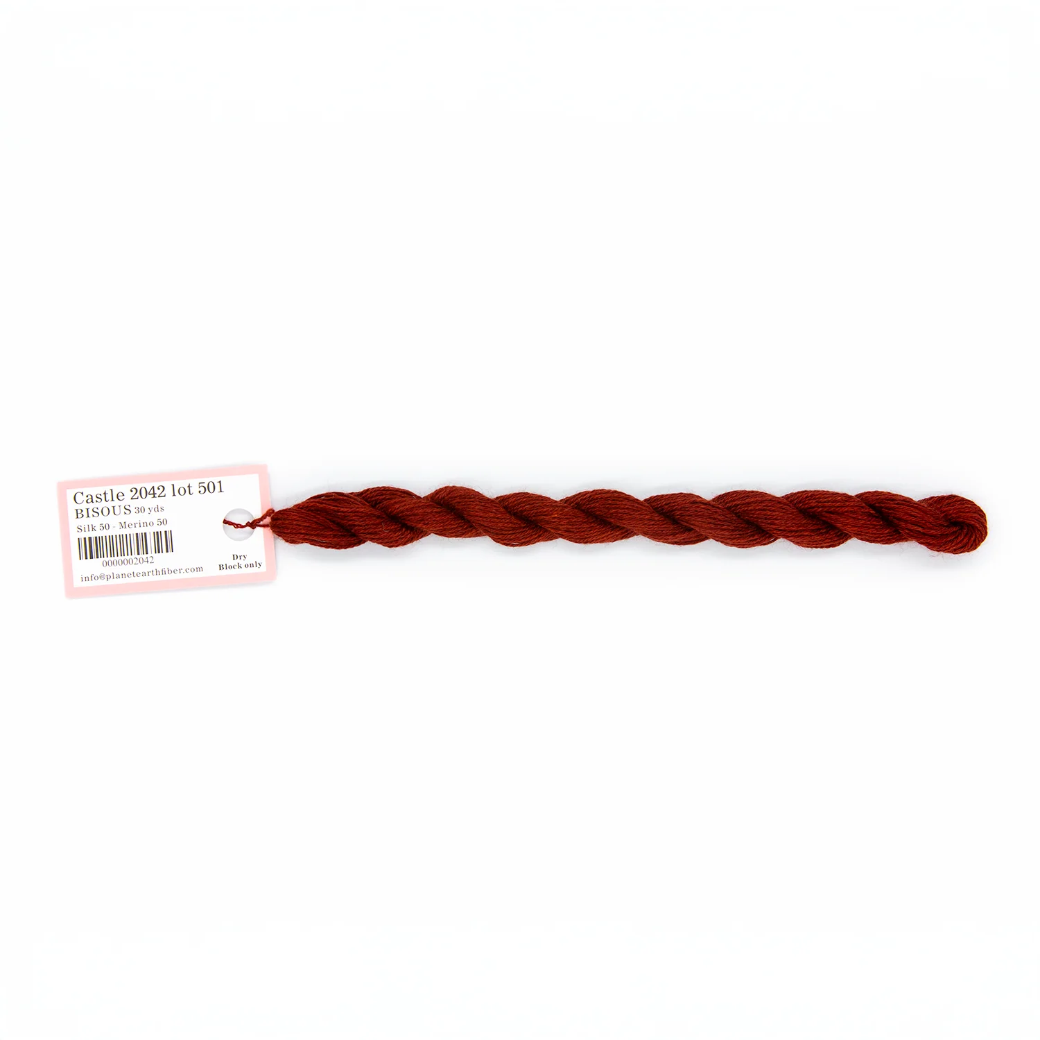 This is Bisous from Planet Earth in color 2042 Castle. Bisous is a multipurpose silk-wool blend from Tilli Tomas. Use as-is for very light coverage on 18 mesh or for embroidery. Use additional plies to build up coverage on canvas - for full coverage, we recommend 2 plies on 18 mesh and 3 plies on 13 mesh.