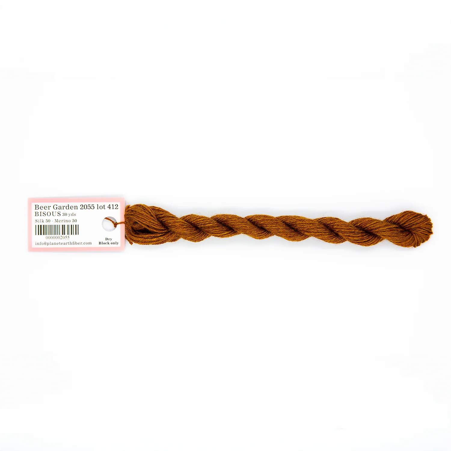 This is Bisous from Planet Earth in color 2055 Beer Garden. Bisous is a multipurpose silk-wool blend from Tilli Tomas. Use as-is for very light coverage on 18 mesh or for embroidery. Use additional plies to build up coverage on canvas - for full coverage, we recommend 2 plies on 18 mesh and 3 plies on 13 mesh.