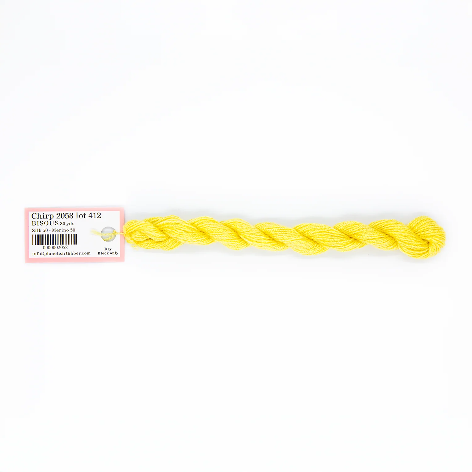 This is Bisous from Planet Earth in color 2058 Chirp. Bisous is a multipurpose silk-wool blend from Tilli Tomas. Use as-is for very light coverage on 18 mesh or for embroidery. Use additional plies to build up coverage on canvas - for full coverage, we recommend 2 plies on 18 mesh and 3 plies on 13 mesh.