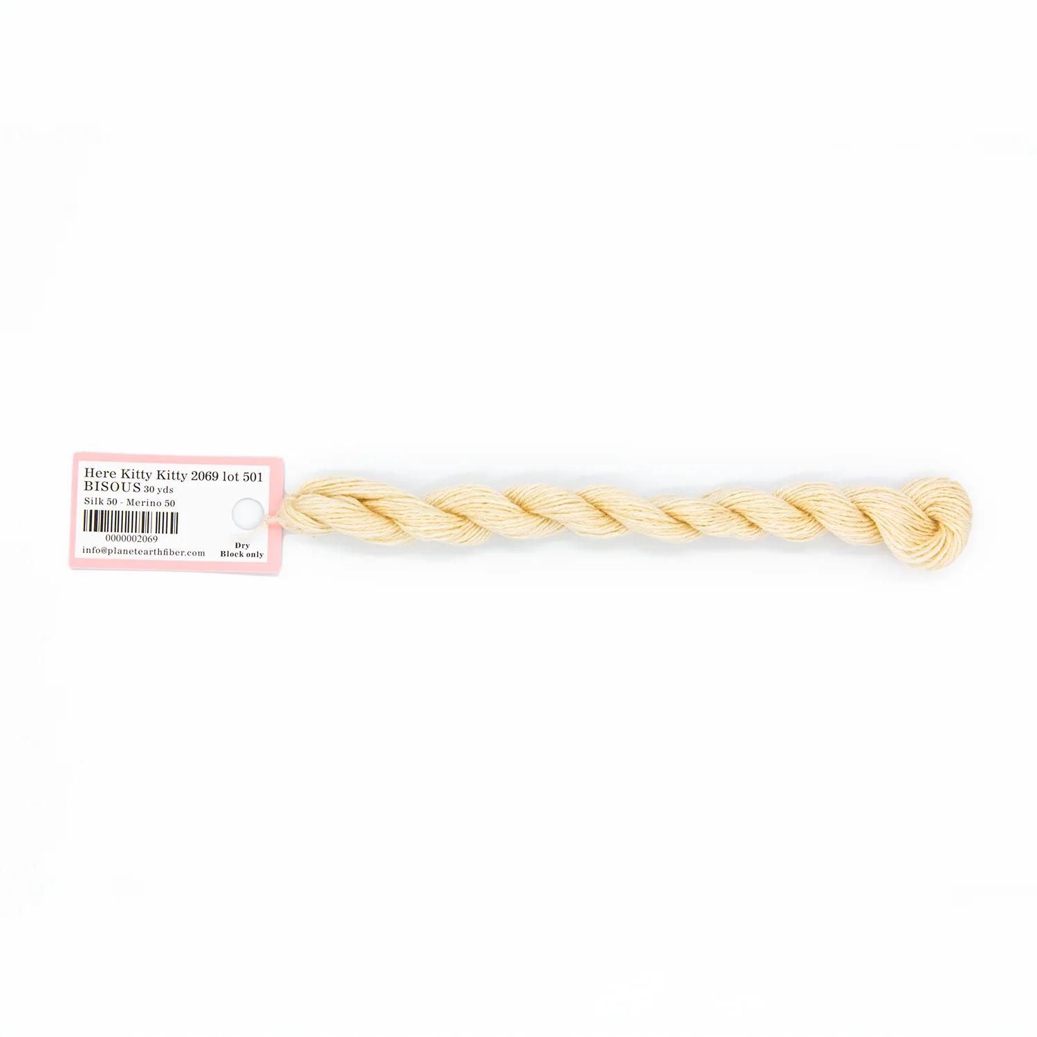 This is Bisous from Planet Earth in color 2069 Here Kitty-Kitty. Bisous is a multipurpose silk-wool blend from Tilli Tomas. Use as-is for very light coverage on 18 mesh or for embroidery. Use additional plies to build up coverage on canvas - for full coverage, we recommend 2 plies on 18 mesh and 3 plies on 13 mesh.