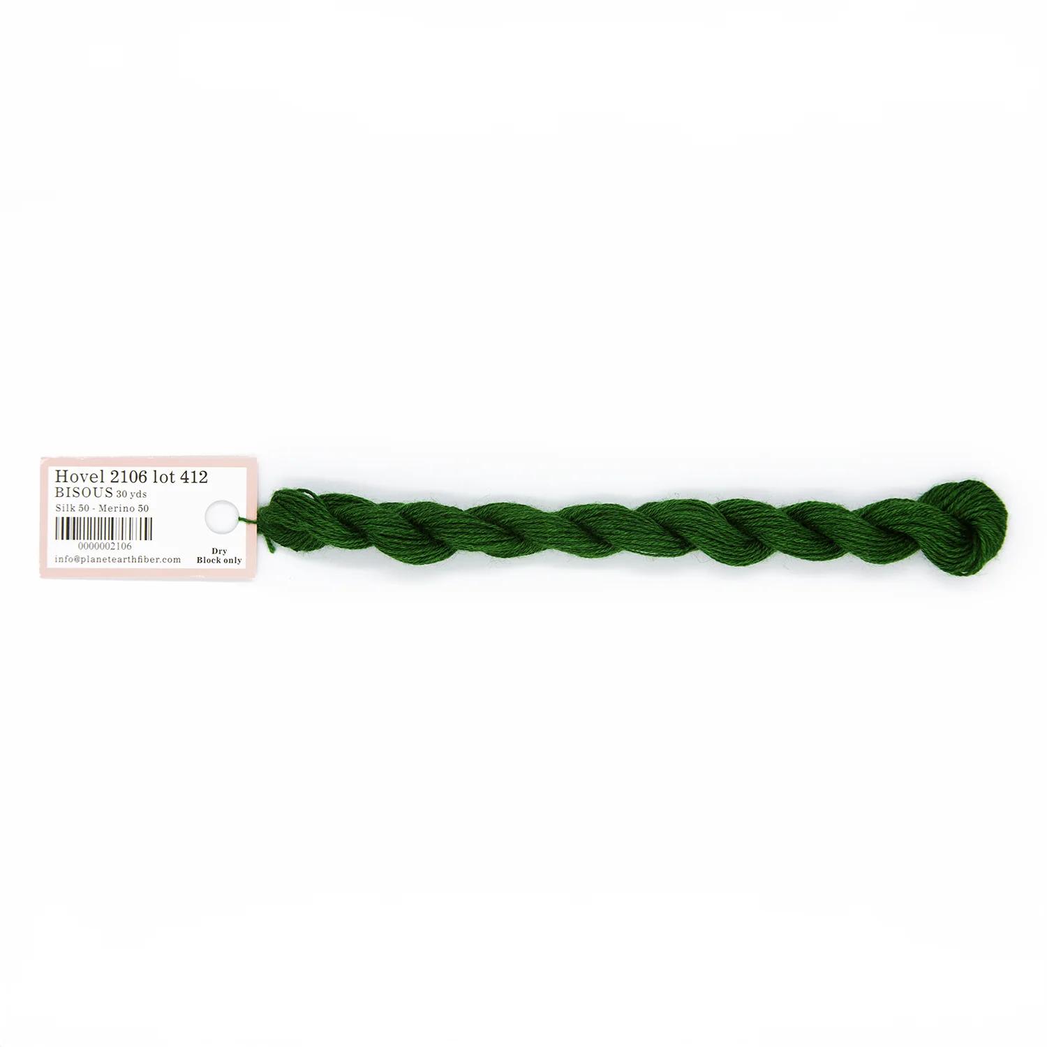 This is Bisous from Planet Earth in color 2106 Hovel. Bisous is a multipurpose silk-wool blend from Tilli Tomas. Use as-is for very light coverage on 18 mesh or for embroidery. Use additional plies to build up coverage on canvas - for full coverage, we recommend 2 plies on 18 mesh and 3 plies on 13 mesh.
