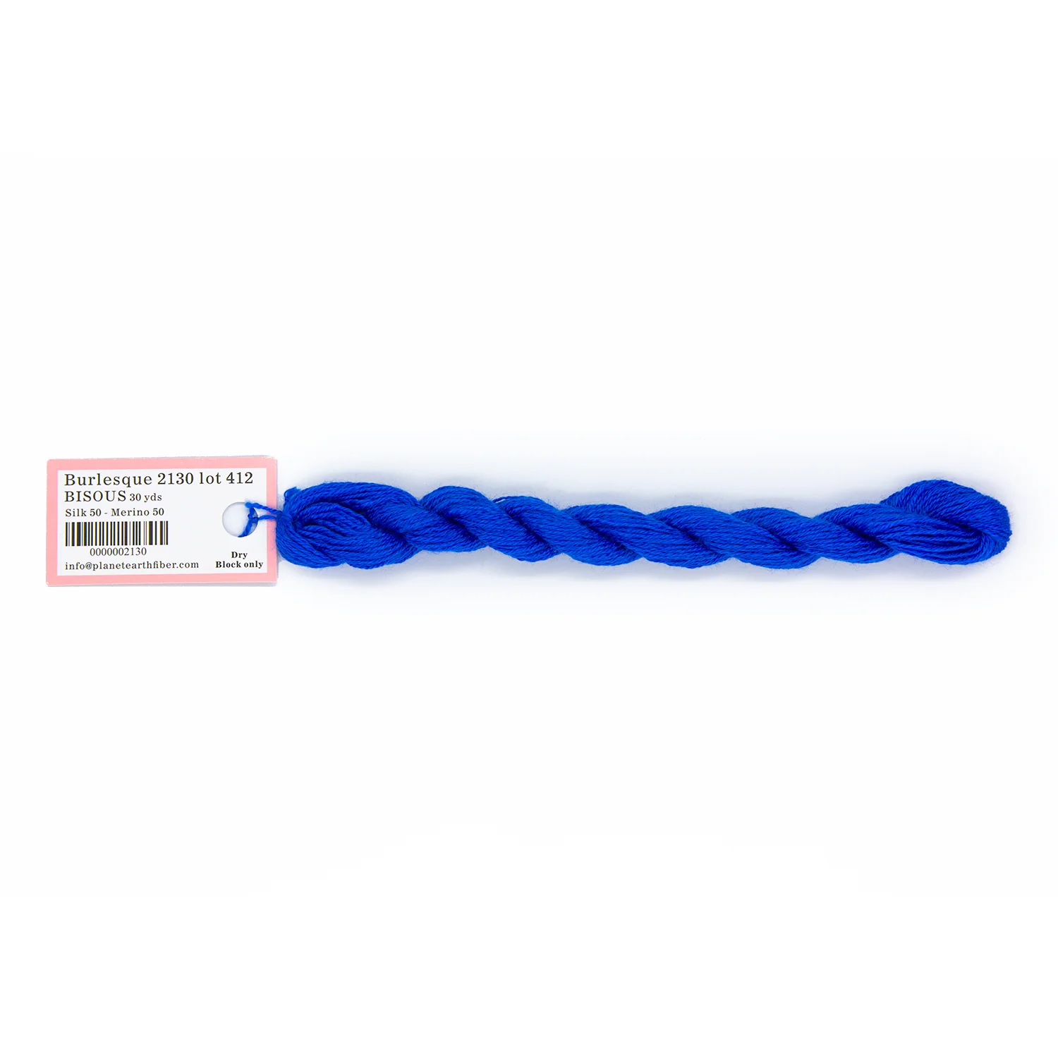 This is Bisous from Planet Earth in color 2130 Burlesque. Bisous is a multipurpose silk-wool blend from Tilli Tomas. Use as-is for very light coverage on 18 mesh or for embroidery. Use additional plies to build up coverage on canvas - for full coverage, we recommend 2 plies on 18 mesh and 3 plies on 13 mesh.