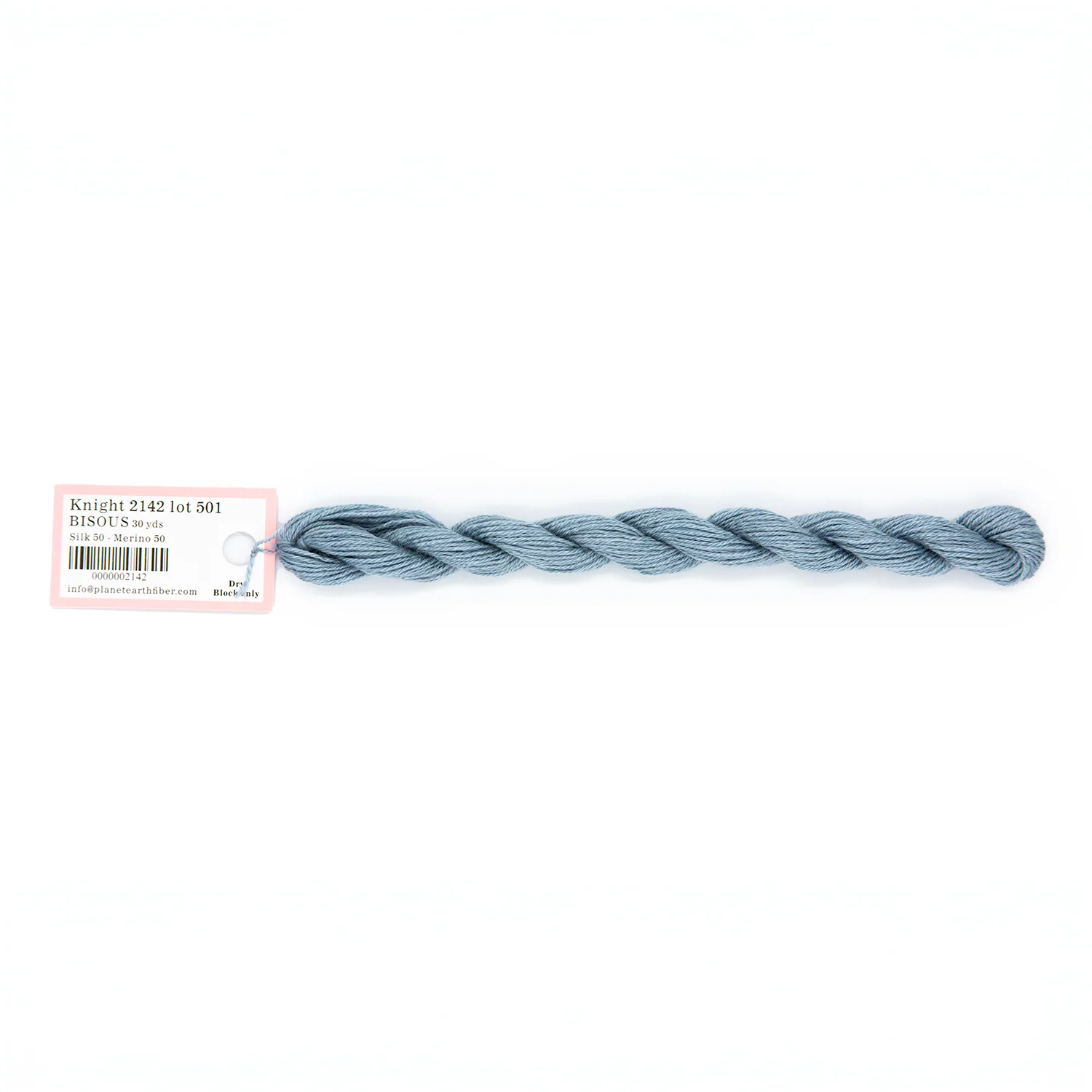 This is Bisous from Planet Earth in color 2142 Knight. Bisous is a multipurpose silk-wool blend from Tilli Tomas. Use as-is for very light coverage on 18 mesh or for embroidery. Use additional plies to build up coverage on canvas - for full coverage, we recommend 2 plies on 18 mesh and 3 plies on 13 mesh.