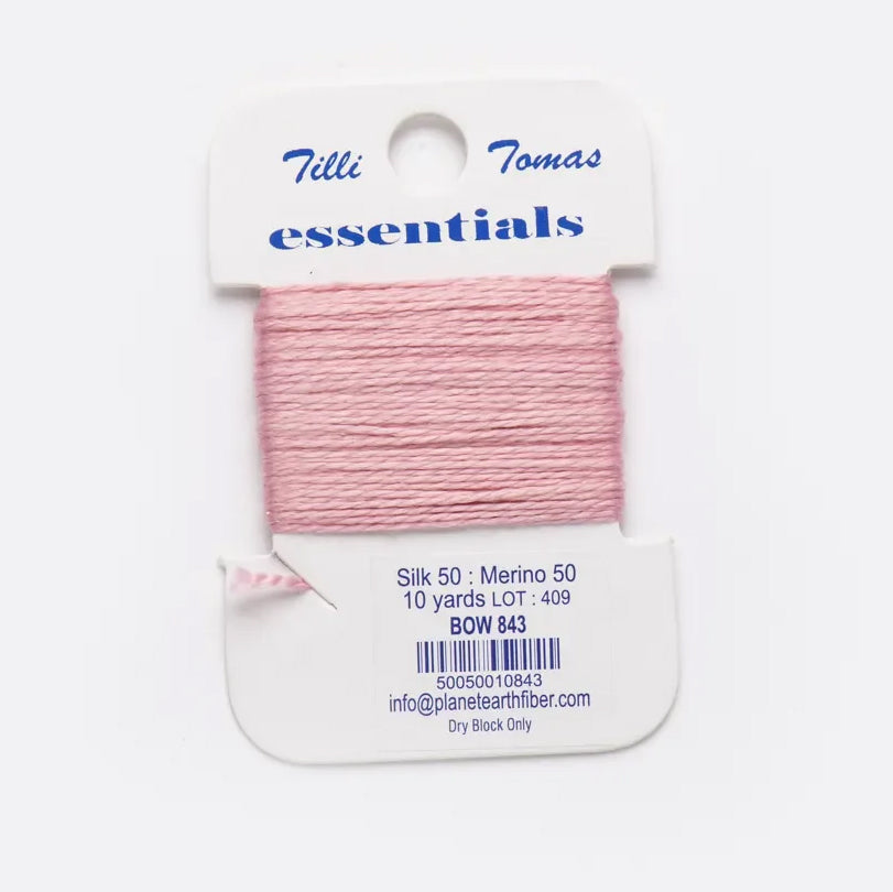 These are the Tilli Tomas Essentials from Planet Earth in Bow. A silk-wool blend perfect for 18 mesh canvases. 1 ply on 18 mesh. Colors match Milan.