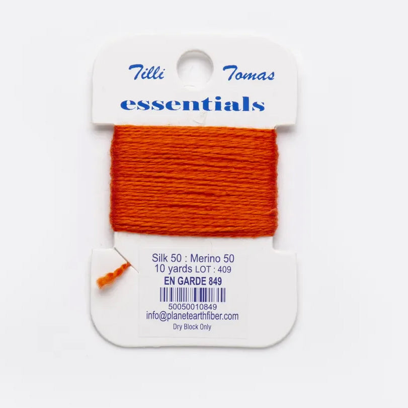 These are the Tilli Tomas Essentials from Planet Earth in En Garde. A silk-wool blend perfect for 18 mesh canvases. 1 ply on 18 mesh. Colors match Milan.
