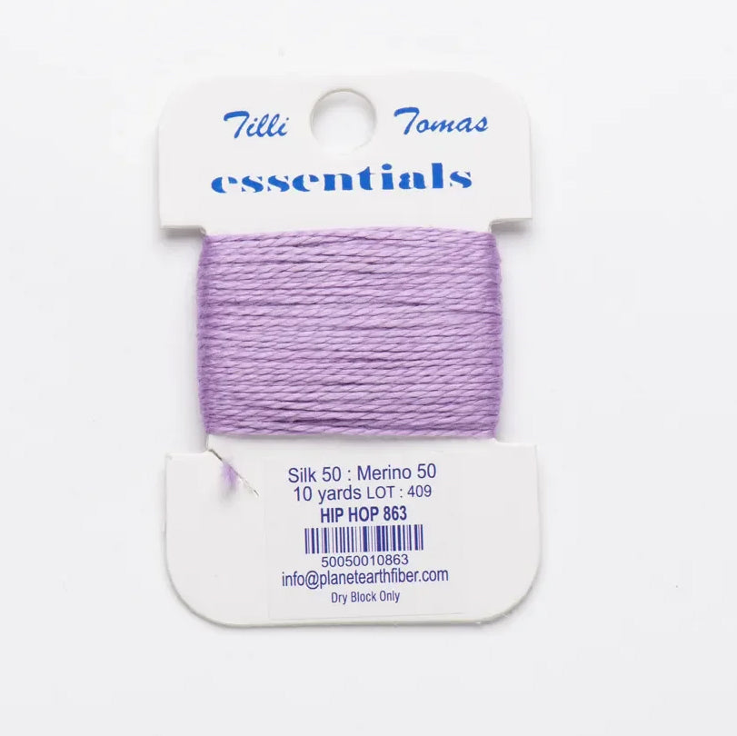 These are the Tilli Tomas Essentials from Planet Earth in Hip Hop. A silk-wool blend perfect for 18 mesh canvases. 1 ply on 18 mesh. Colors match Milan.