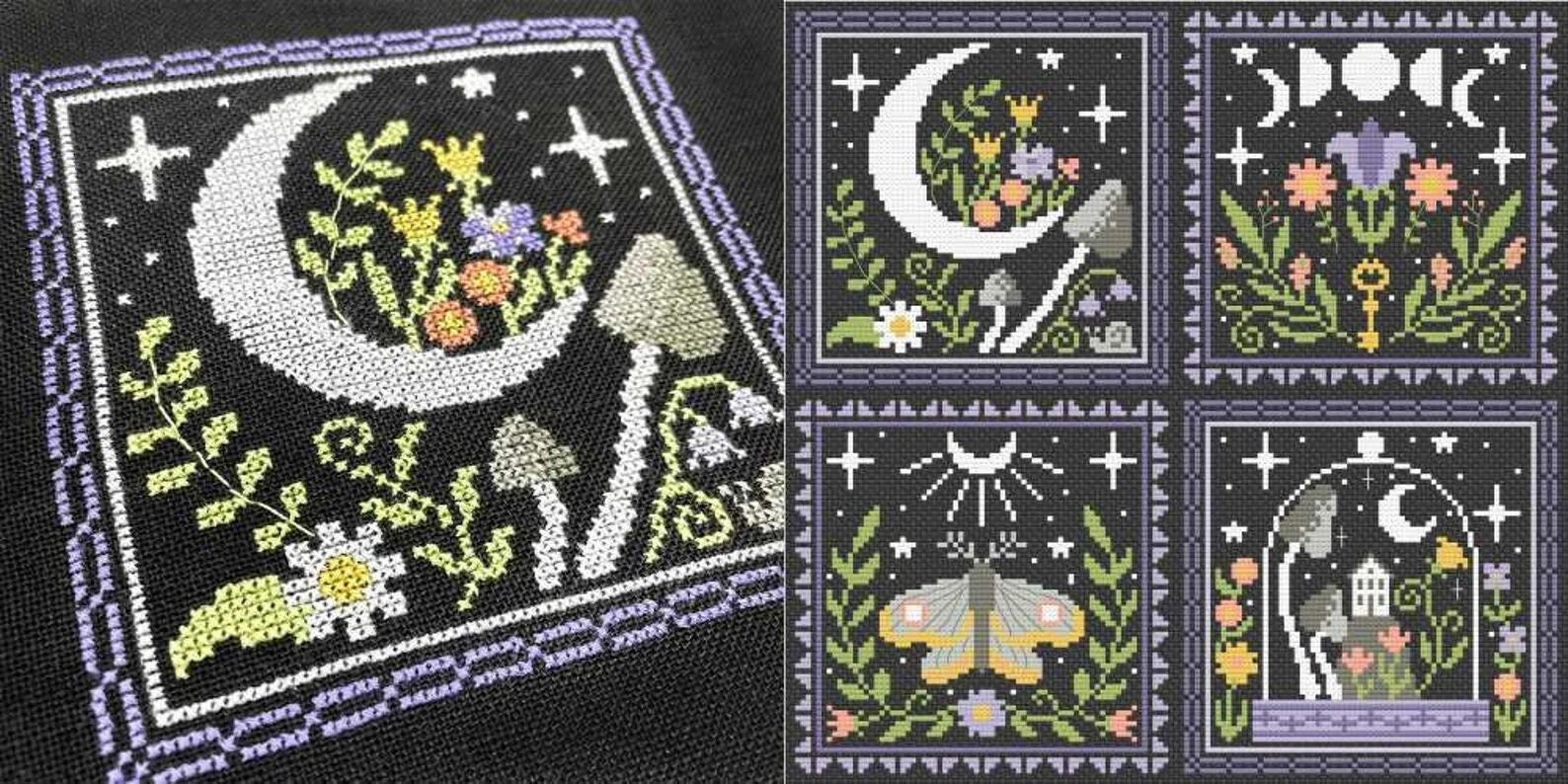 Night Signs is a charming counted cross stitch pattern by Tiny Modernist. Stitch counts are 71W x 71H each.
