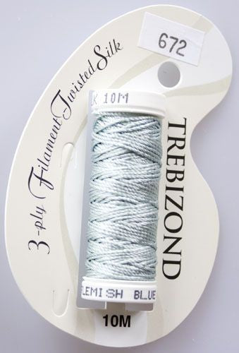This is Twisted Silk from Trebizond in color 0672 Flemish Blue. A perled silk in a wide range of rich colors. Use as-is on 18 mesh.