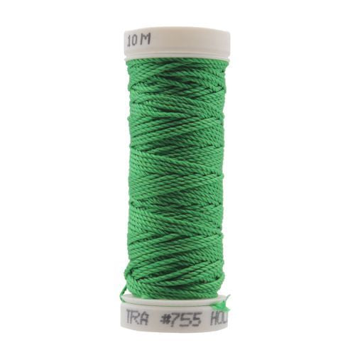This is Twisted Silk from Trebizond in color 0755 Holiday Green. A perled silk in a wide range of rich colors. Use as-is on 18 mesh.