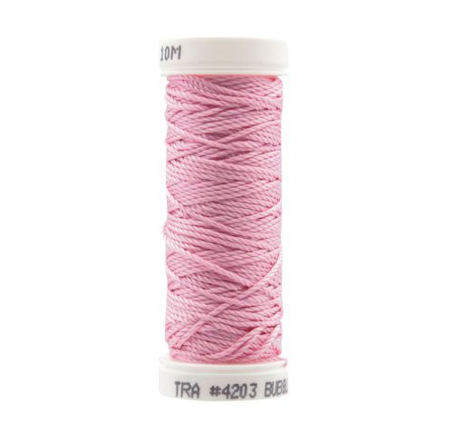 This is Twisted Silk from Trebizond in color 4203 Bubble Gum. A perled silk in a wide range of rich colors. Use as-is on 18 mesh.