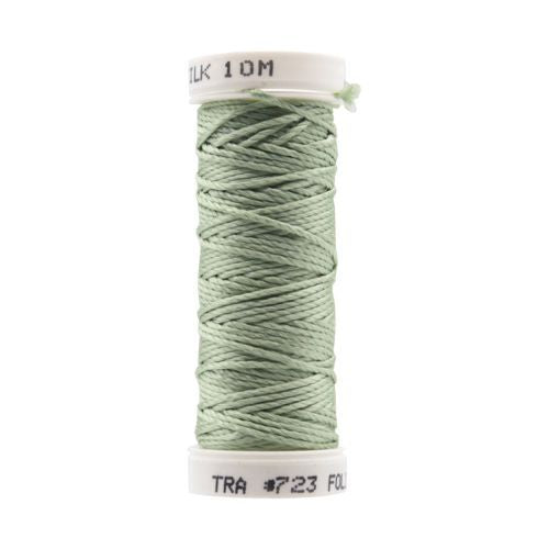 This is Twisted Silk from Trebizond in color 0723 Foliage Green. A perled silk in a wide range of rich colors. Use as-is on 18 mesh.