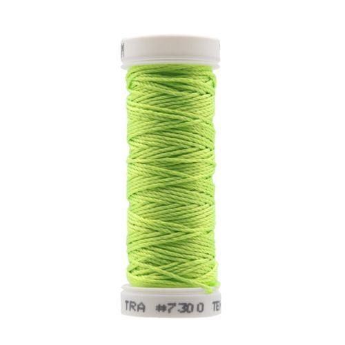 This is Twisted Silk from Trebizond in color 7300 Trendril Green. A perled silk in a wide range of rich colors. Use as-is on 18 mesh.