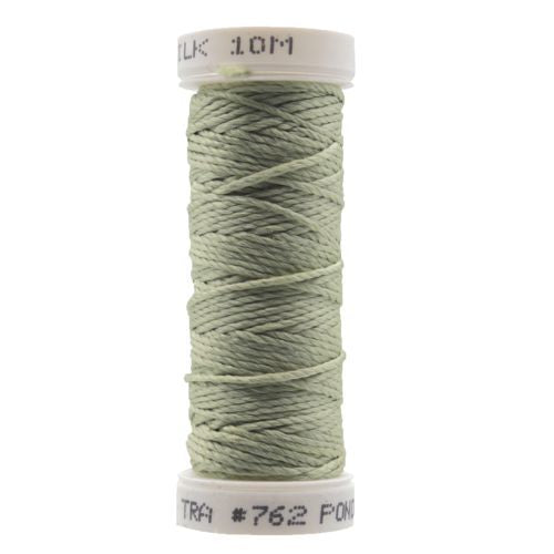 This is Twisted Silk from Trebizond in color 0762 Ponderosa Green. A perled silk in a wide range of rich colors. Use as-is on 18 mesh.