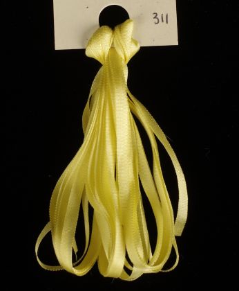 This is a 3.5mm wide hand dyed silk ribbon in Murphy's Yellow by Treenway Silks. Perfect for silk ribbon embroidery, on fabric or on canvas. Excellent for adding ruffles and dimensional flowers!