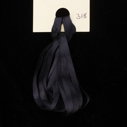 This is a 3.5mm wide hand dyed silk ribbon in Dark Blue Jeans by Treenway Silks. Perfect for silk ribbon embroidery, on fabric or on canvas. Excellent for adding ruffles and dimensional flowers!