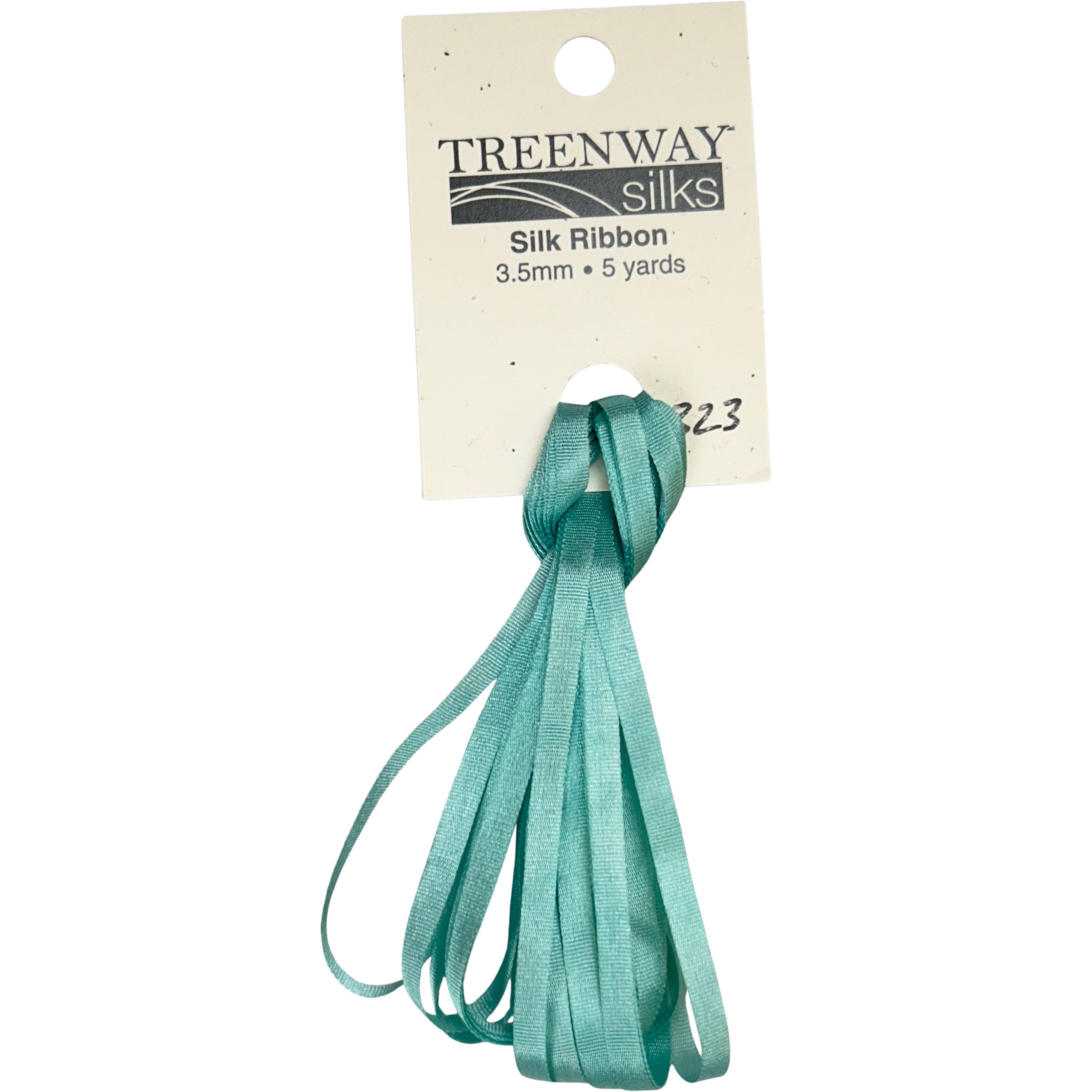 This is a 3.5mm wide hand dyed silk ribbon in Saira's Jade by Treenway Silks. Perfect for silk ribbon embroidery, on fabric or on canvas. Excellent for adding ruffles and dimensional flowers!