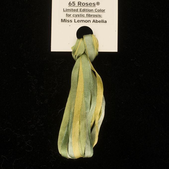 This is a 3.5mm wide hand painted silk ribbon in Miss Lemon Abelia by Treenway Silks. Beautifully variegated silk ribbons. Perfect for silk ribbon embroidery, on fabric or on canvas. Excellent for adding ruffles and dimensional flowers!