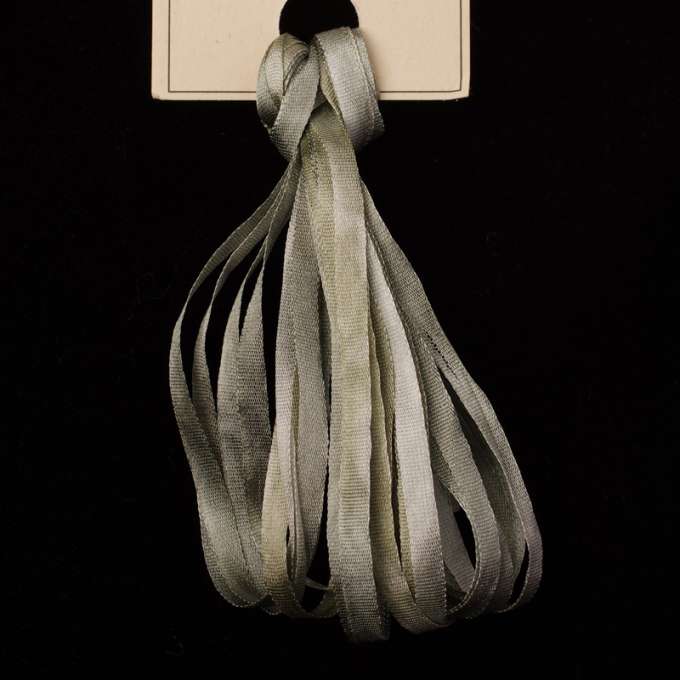 This is a 3.5mm wide hand painted silk ribbon in Desert Green by Treenway Silks. Beautifully variegated silk ribbons. Perfect for silk ribbon embroidery, on fabric or on canvas. Excellent for adding ruffles and dimensional flowers!