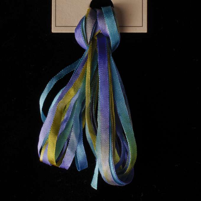 This is a 3.5mm wide hand painted silk ribbon in St.Thomas by Treenway Silks. Beautifully variegated silk ribbons. Perfect for silk ribbon embroidery, on fabric or on canvas. Excellent for adding ruffles and dimensional flowers!