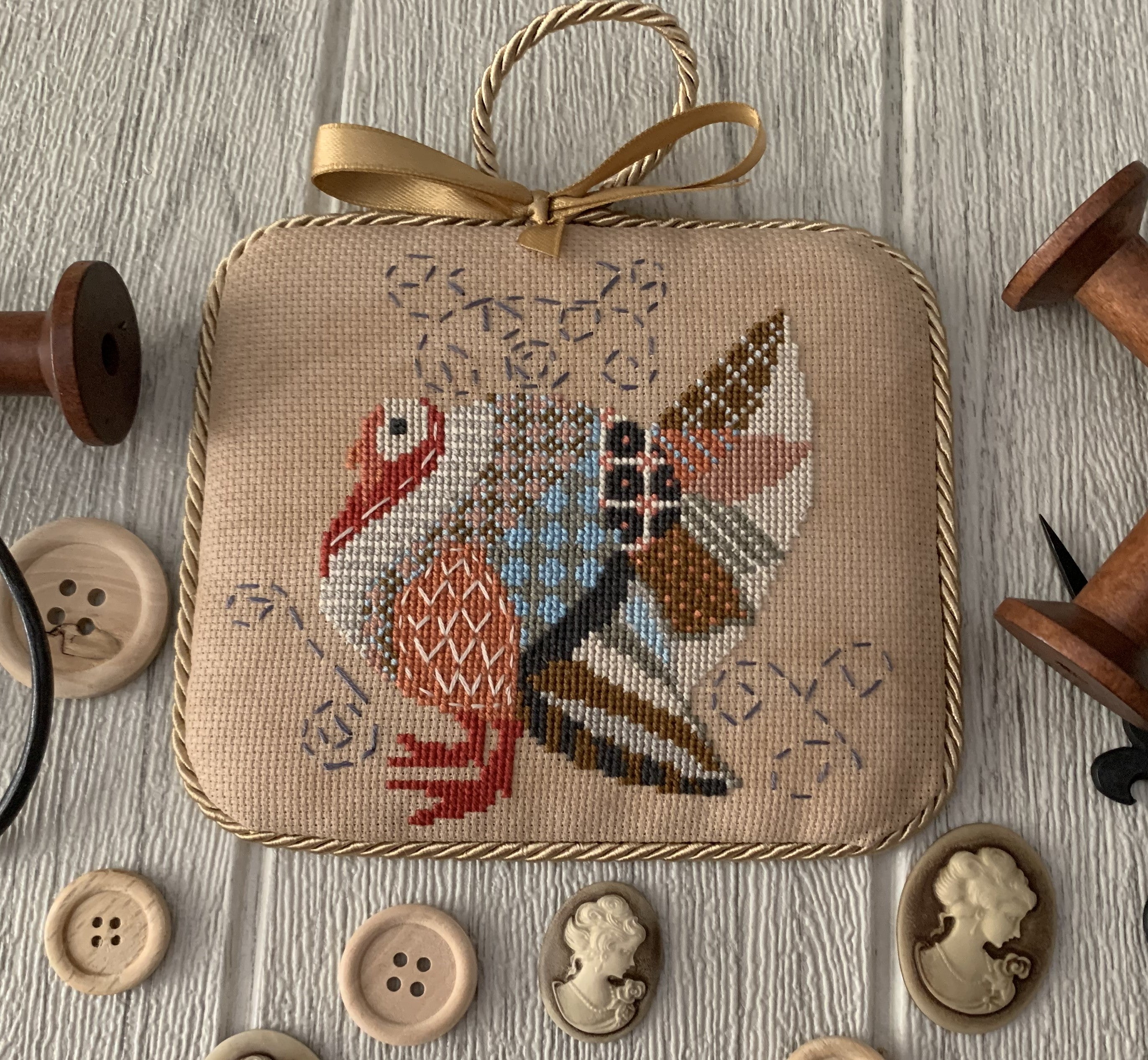 This cross stitch pattern sampler from Twin Peaks Primitives features several classic animals and symbols that are associated with the autumn season. It contains 7 different small patterns (Acorn, Hedgehog, Partridge, Scarecrow, Squirrel and Turkey). The example uses DMC thread.