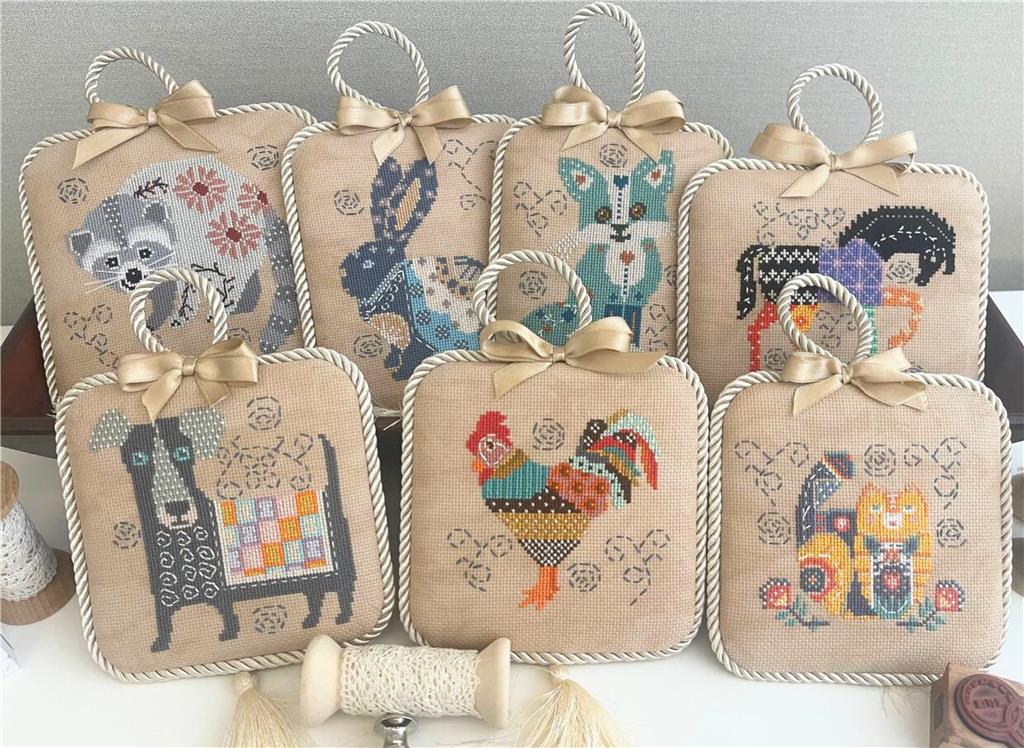 This cross stitch pattern by Twin Peak Primitives features seven colorful Nordic inspired animals.